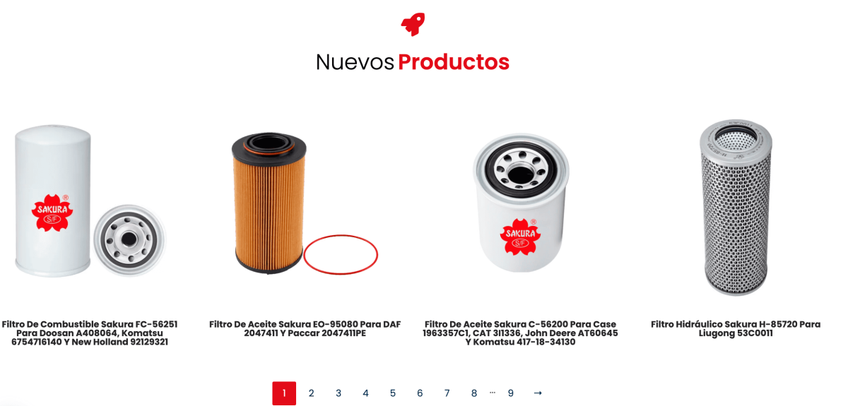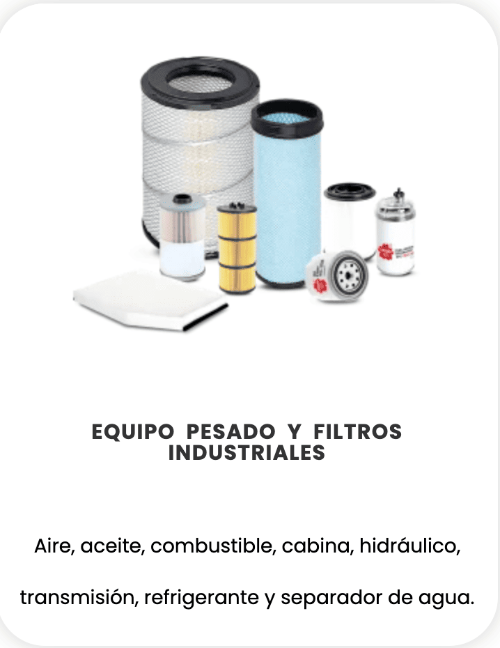 Filtros para Equipos Pesados Marca Sakura. Filtros para Aire, Aceite, Combustible, Cabina, Hidráulica, Transmisión, Refrigerante y Separador de agua.
