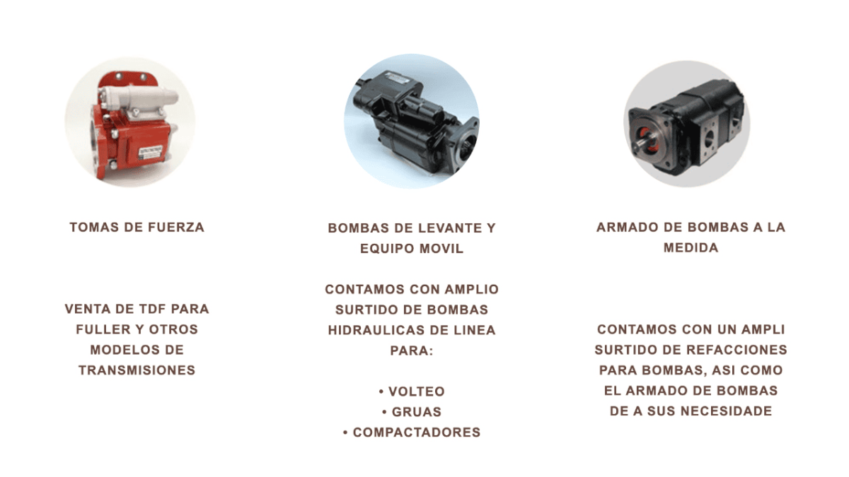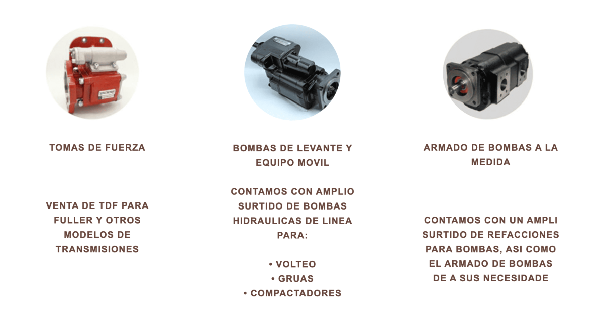 Refacciones Hidráulicas. Tomas de Fuerza. Bombas de Levante y Equipo Movil