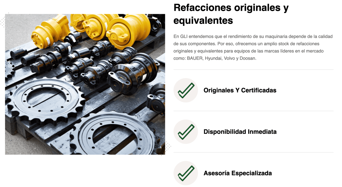 Refacciones para equipos Bauer, Hyundai, Doosan, Volvo, Robust Equipment.