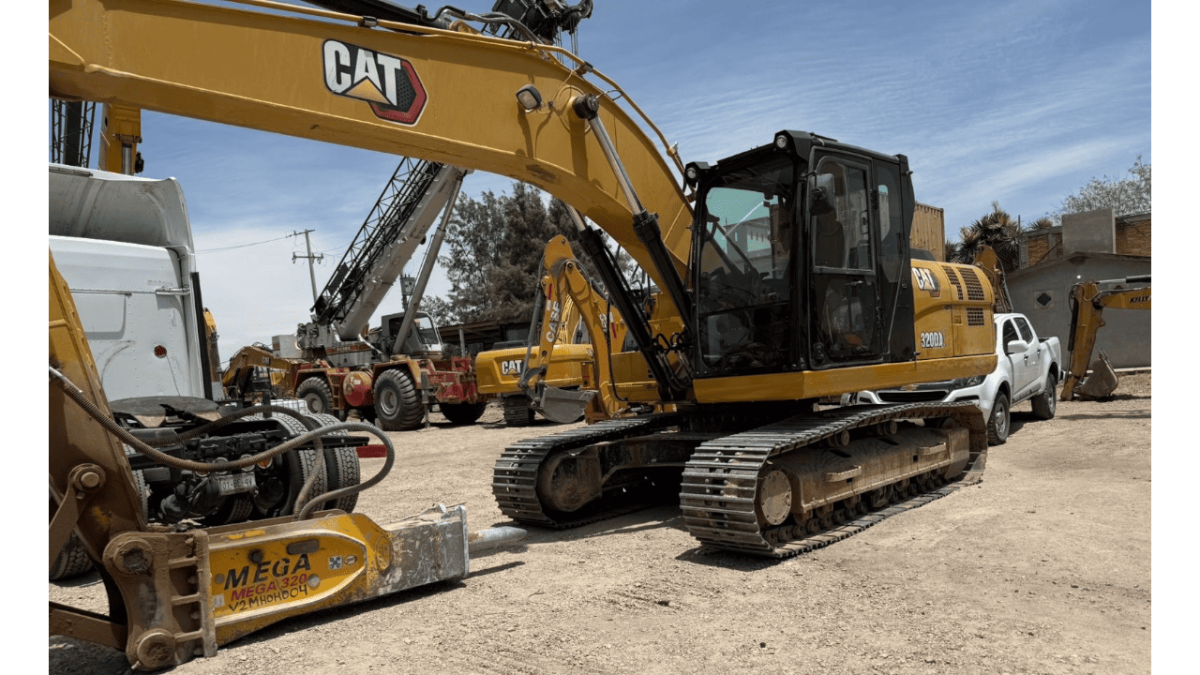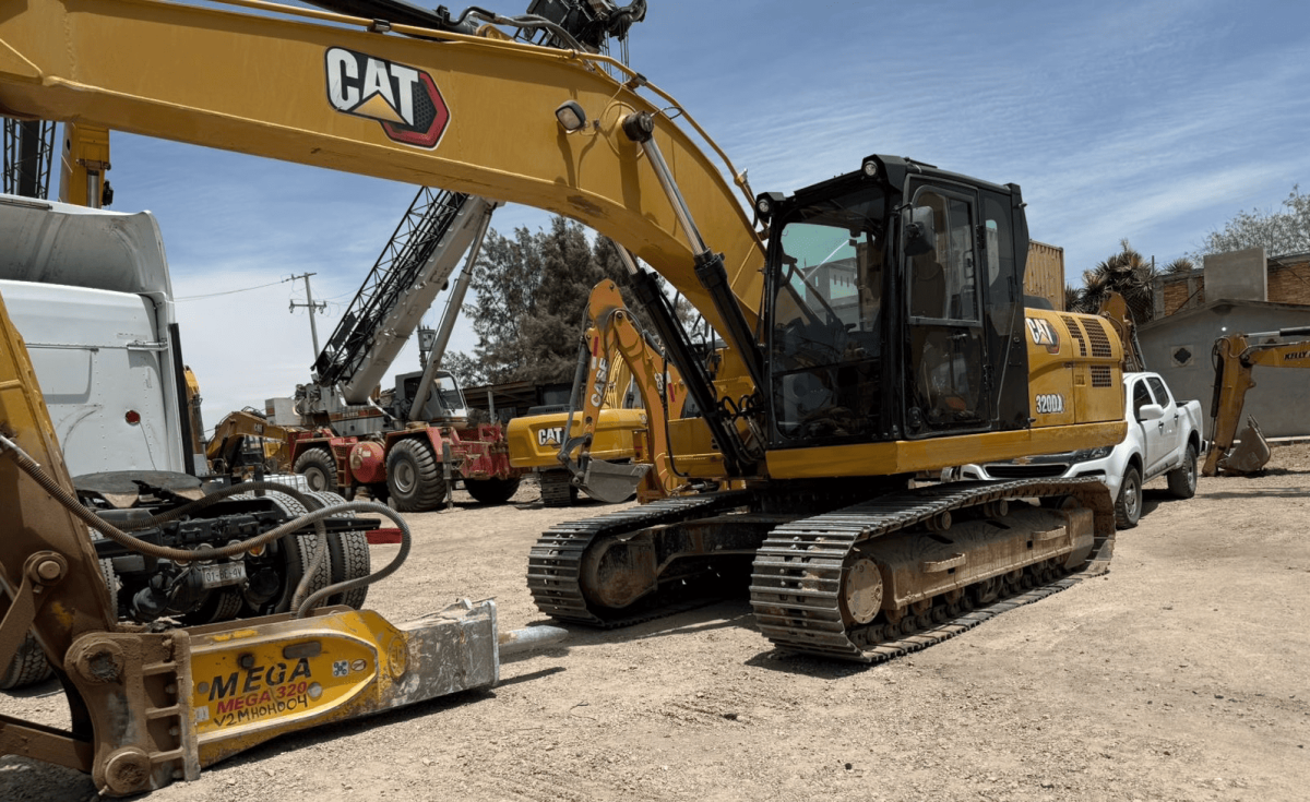 Modelo base con cabina Rops y rodaje, brazo y cuchara estándar.
